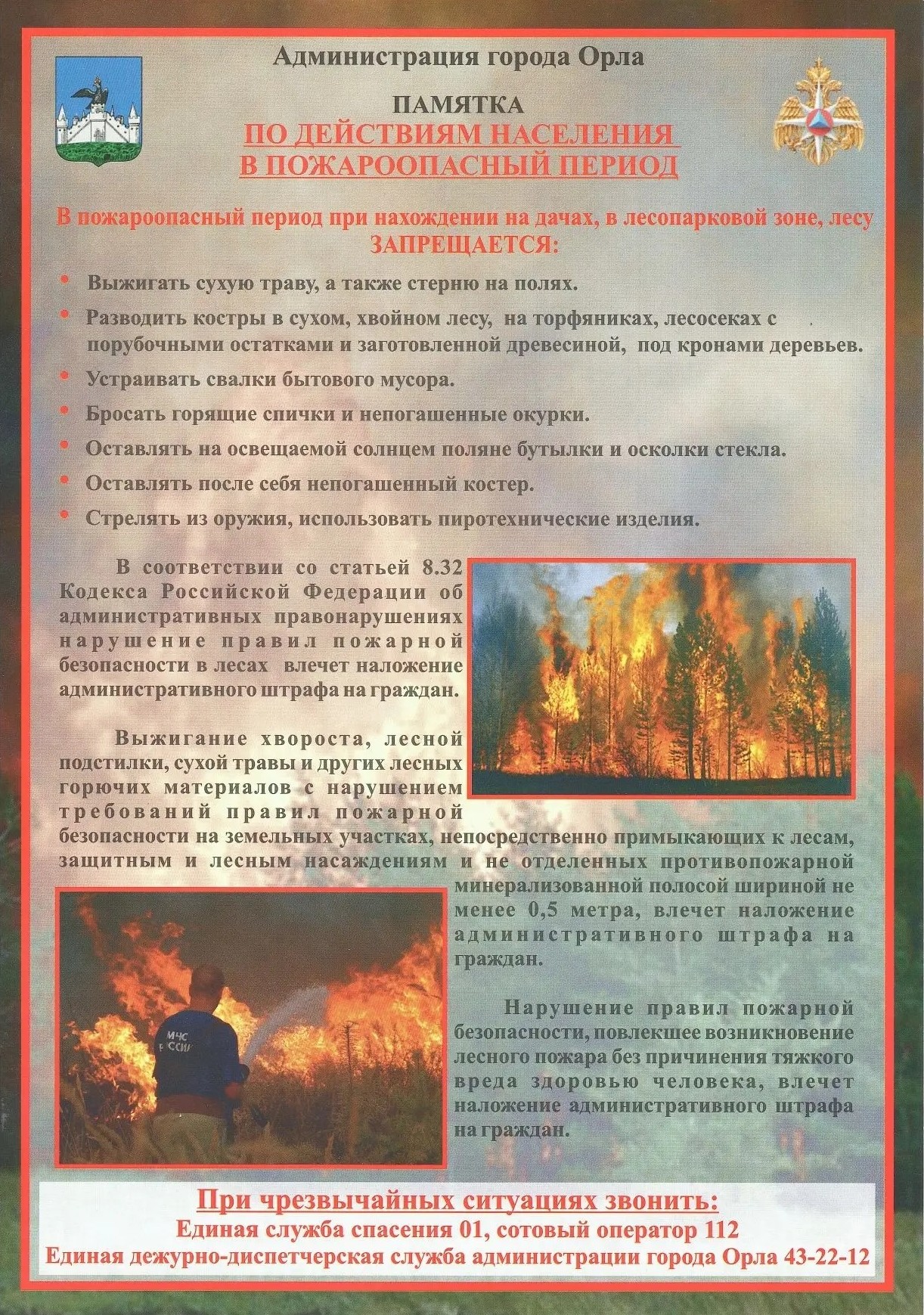 Если вы обнаружили очаги возгорания, немедленно сообщите по телефону единой службы спасения 112.